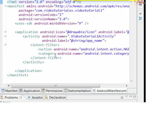 Una vez que hemos creado nos vamos a androidmanifest .xml que es el editor donde se podrá configurar las características generales como el nombre del paquete, actividades que se pueden ejecutar, iconos a mostrar las aplicaciones, permisos.